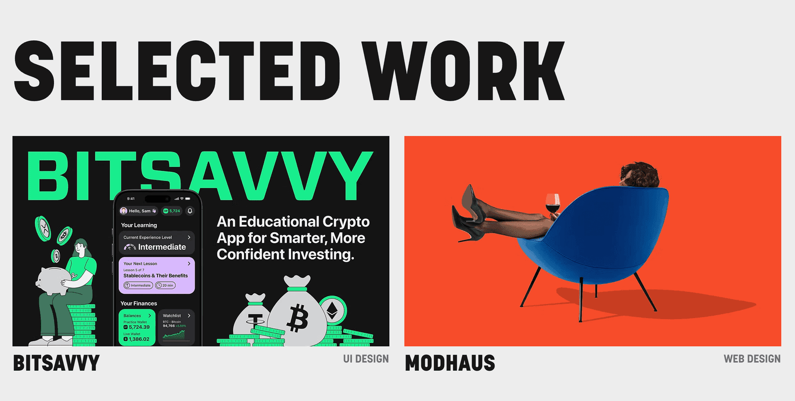 Kyle came from architecture, with some of his own study in visual design, but struggled to translate that into job offers. After Portfolio School transformed his portfolio, he started hearing back.